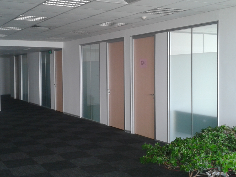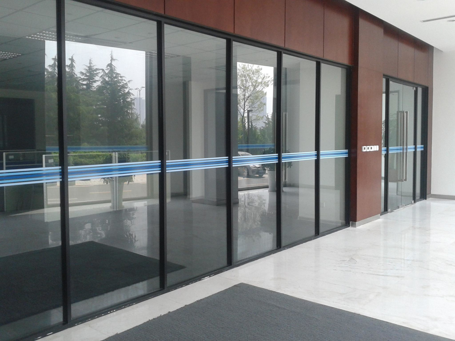 建設(shè)銀行青島市分行總部大廈項目:HX-85款氟碳噴涂啞光黑色單層10mm、雙層5mm鋼化玻璃隔斷,隔斷配套12mm防火木門。先后為建設(shè)銀行多個分支機構(gòu)提供隔斷服務(wù),并建立長期的合作關(guān)系。