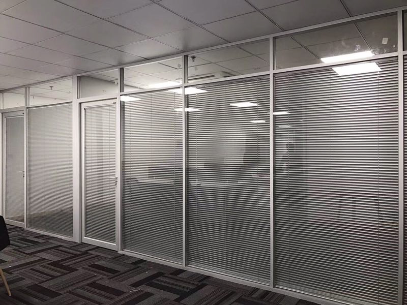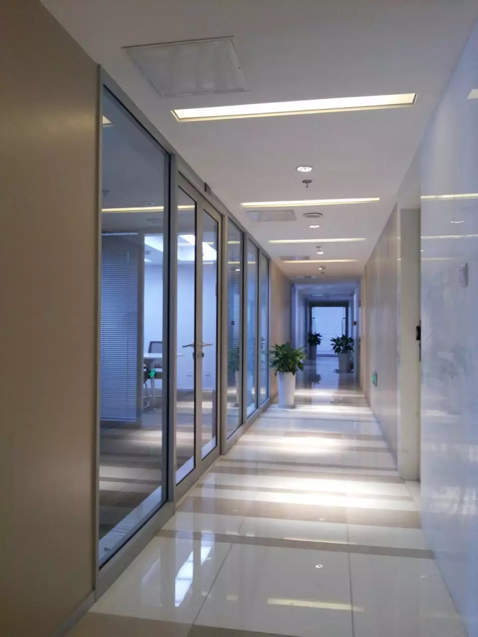 燕歸堂7080廣場(chǎng)項(xiàng)目:HX-85款單層8mm、雙層5mm鋼化玻璃隔斷,堅(jiān)美氧化銀色隔斷型材,隔斷配套6mm鋼化玻璃有框玻璃門,12mm地彈簧玻璃門,兩棟寫字樓整體裝修,隔斷、玻璃門總面積4500平方。