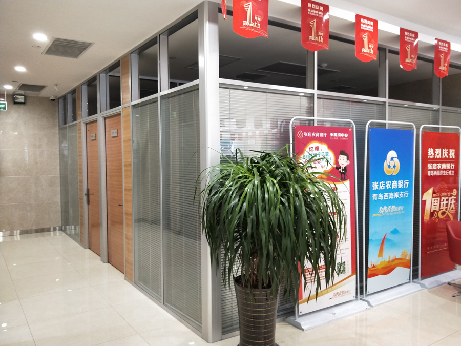 青島農(nóng)商銀行項(xiàng)目:HX-85款氟碳噴涂中古銅色單層10mm、雙層5mm鋼化玻璃隔斷,防彈旋轉(zhuǎn)門(mén)、自動(dòng)門(mén)等,隔斷施工面積3000平方以上,先后為青島農(nóng)商銀行多個(gè)分支機(jī)構(gòu)提供服務(wù),并建立長(zhǎng)期的合作關(guān)系。