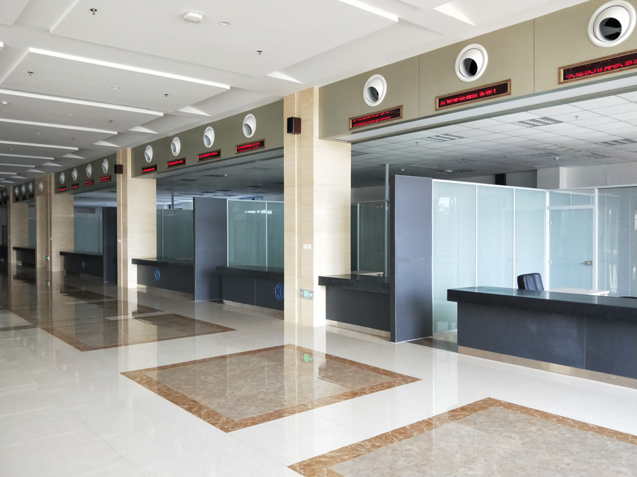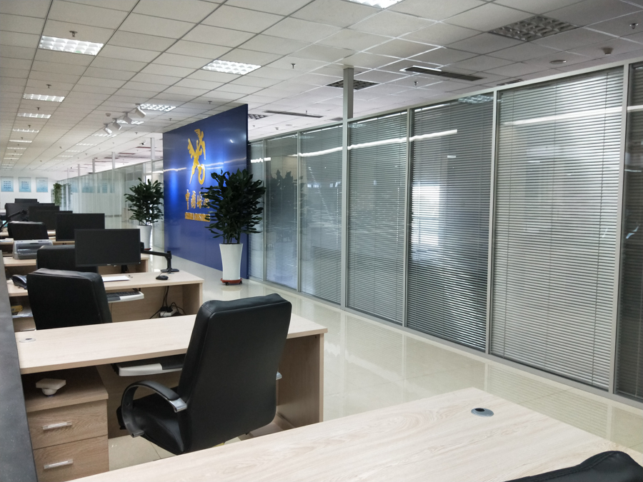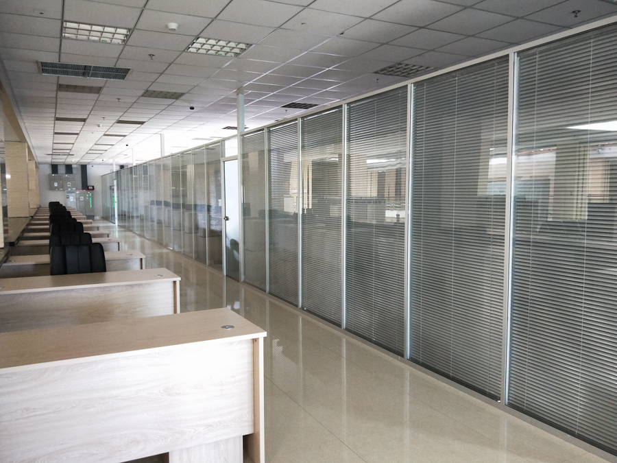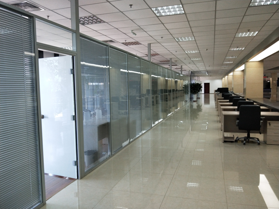 董家口航運(yùn)中心項(xiàng)目:HX-85款氧化銀色雙層5mm鋼化玻璃內(nèi)置百葉隔斷,隔斷配套10mm鋼化磨砂玻璃門扇。隔斷主要分布在大廈的一、二層對(duì)外業(yè)務(wù)區(qū)域,總面積1500平方。