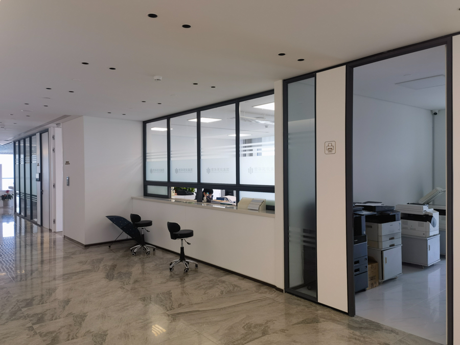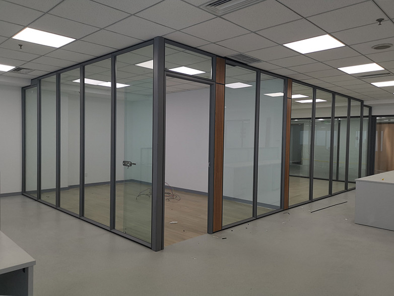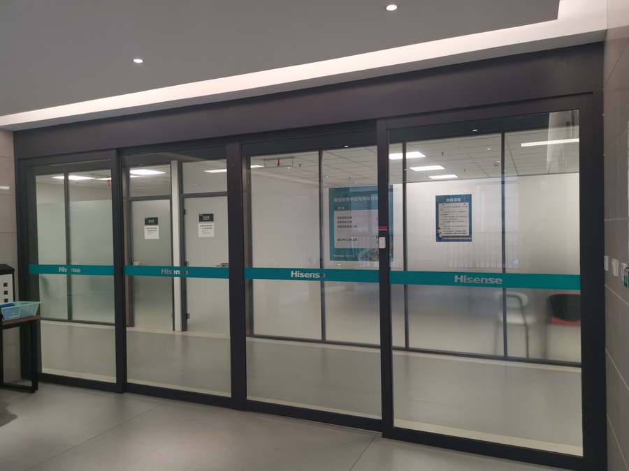 海信研發(fā)中心項(xiàng)目:HX-85款氧化銀色單層10mm鋼化玻璃及裝飾板復(fù)合隔斷,隔斷配套12mm鋼化玻璃門及門禁系統(tǒng)。